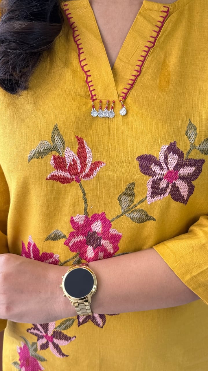*crafted from premium pure cotton. This stunning set features delicate front embroidery that highlights the richness of tradition with a modern twist. Lightweight, breathable, and perfect for all-day wear, it's a must-have for anyone looking to add a calming yet aesthetic outfit to their wardrobe.
