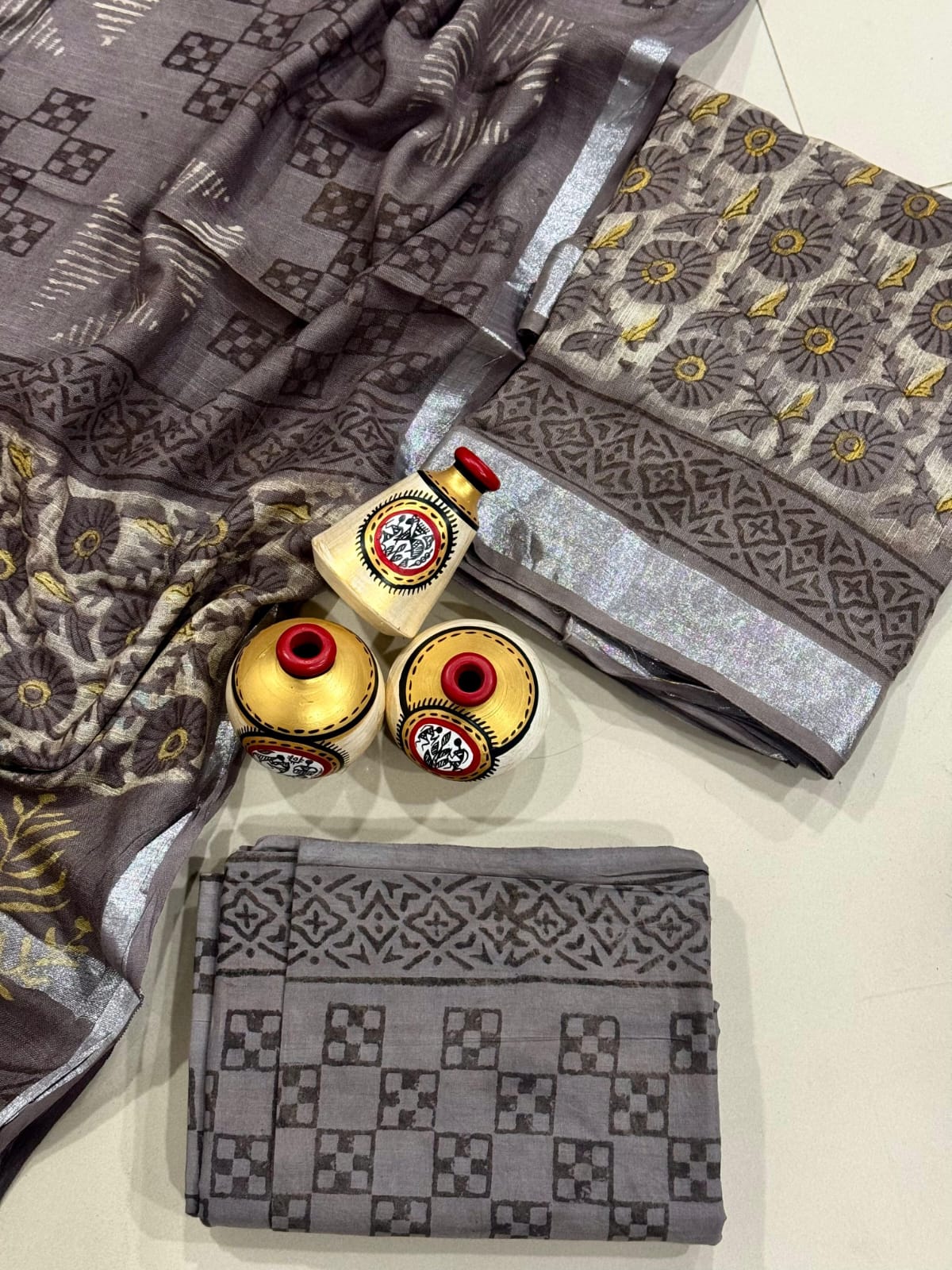 Exclusive Hand Block Linen Suit With Linen Dupatta(VkLS29)
